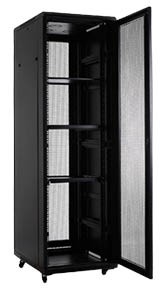 This floor-standing cabinet is equipped with castor wheels for easy mobility, making repositioning straightforward in dynamic environments. Its fully enclosed design features perforated front and rear doors, facilitating optimal airflow and cooling, essential for maintaining equipment performance and longevity. The removable side panels enable quick access for maintenance, upgrades, or reconfiguration without disrupting the entire enclosure.